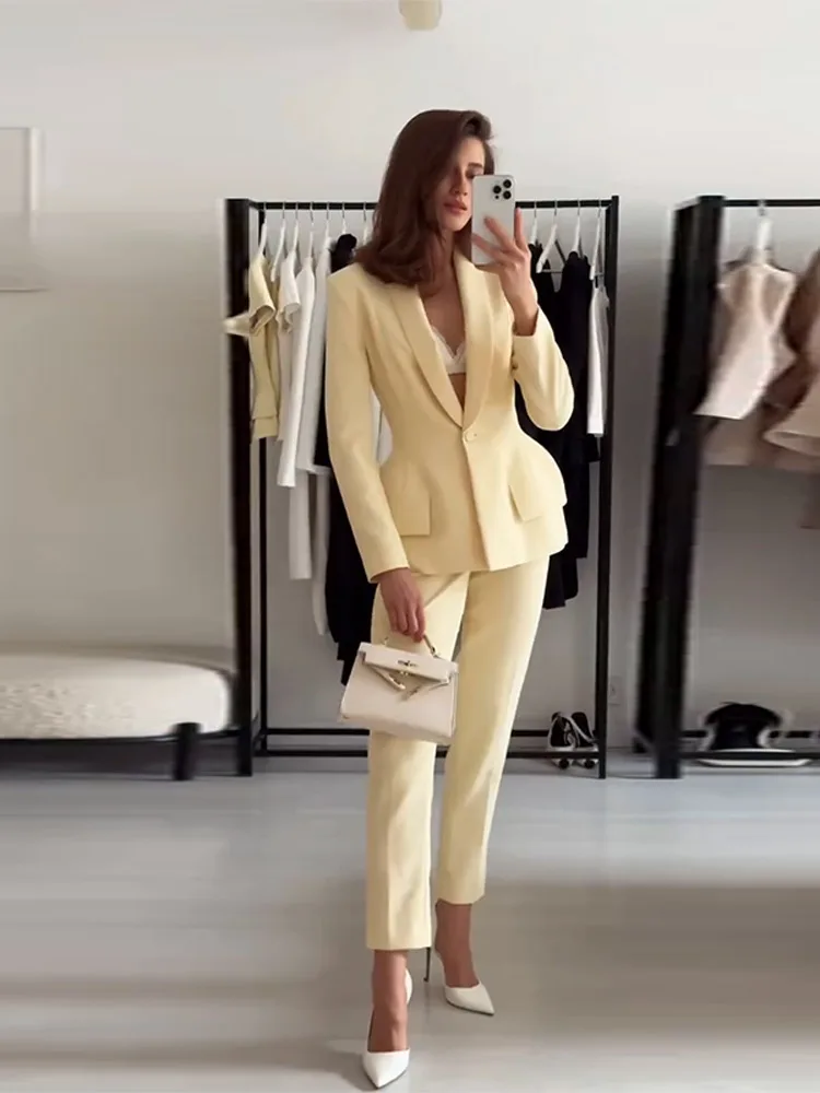 2Sets 4XL-S Medium and Long Suits Jackets for Women Autumn Spring New Casual Suits Woman Clothing One-button Suits Coats Slim Blazers